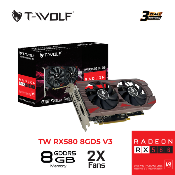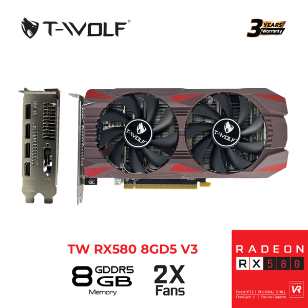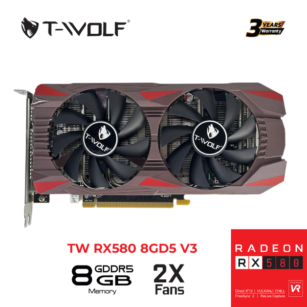 🔥 Card Màn Hình T-WOLF RX 580 8GB GDDR5 V3 – Sức Mạnh Đồ Họa Đỉnh Cao Cho Game Thủ & Designer