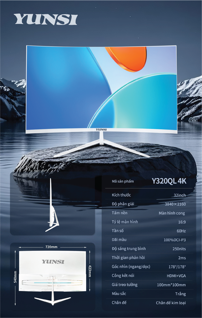 Yunsi Y320QL 32 inch Cong (60Hz, 4K, 2ms, HDMI-VGA) - Màu trắng